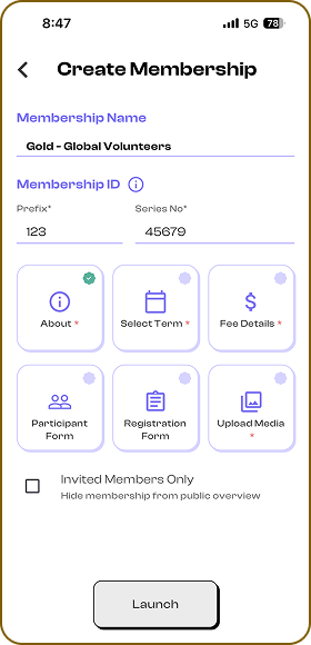 2. Tap 'Create Membership'